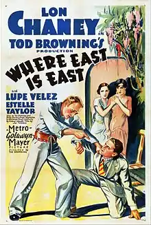 Where East Is East is a 1929 American synchronized sound drama film starring Lon Chaney as an animal trapper in Laos. While the film has no audible dialog, it was released with a synchronized musical score with sound effects using both the sound-on-disc and sound-on-film process. The motion picture is Chaney's penultimate film without dialogue and the last of his collaborations with director Tod Browning.[1] Metro-Goldwyn-Mayer used the Western Electric sound-on-film process to record the soundtrack for the film.[2]