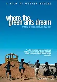Where the Green Ants Dream (German: Wo die grünen Ameisen träumen) is a 1984 English-language West German film co-written and directed by Werner Herzog, made in Australia. Based on a true story about Indigenous land rights in Australia but slated as a mixture of fact and fiction, the film only got a limited release in Australia and was not well received by critics, although it did fare a bit better in Europe and North America.