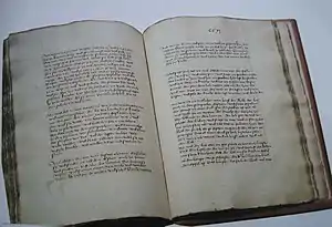 The White Book of Sarnen (German: Weisses Buch von Sarnen) is a collection of medieval manuscripts compiled in the late 15th century by Hans Schriber, state secretary (Landschreiber) in the Swiss Confederation canton Obwalden. This volume, 258 pages in length, was given its name because of the white parchment in which it is bound. The White Book of Sarnen contains the earliest surviving reference to the Swiss national hero William Tell.