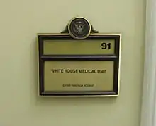 White House Medical Unit door placard inside the Eisenhower Executive Office Building.