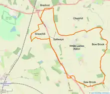 In 976 the western boundary was changed as the result of the ruling of the Hundred Court where by a local farmer was accused of illegally farming land to the western side of the saltway. The ruling was in his favor, as a result the parish was expanded to include the area of Snaetch's Hill to the west of the saltway.[5] Today known as Sneachill.