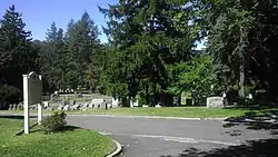 White Plains Rural Cemetery is a historic cemetery located in the city of White Plains, Westchester County, New York. The cemetery was organized in 1854 and designed in 1855. It contains miles of narrow, paved roads, none of which are in a straight line. The roads create circular and lozenge-shaped areas for burials. Also on the property is a former church, now a cemetery office. It was built in 1797, and is a 2+12-story, five-by-three-bay frame building with a high-pitched gable roof. It was modified for office use in 1881.[2]