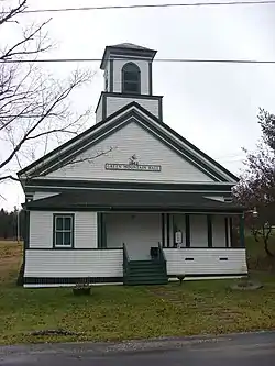 The historic village center is stretched along Vermont Route 100, roughly between Sadawga Lake Road and Brook Street, and extends north along School Street almost to Maple Drive. A few properties on Brook Street and Stimpson Hill Road that lie adjacent to these are also included. Most of the buildings in the district are residential wood frame structures, in vernacular interpretations of the Greek Revival and Gothic Revival. Other buildings of note are the Greek Revival Whitingham Community Church (1862), Green Mountain Hall (formerly the c. 1860 Universalist Church, also Greek Revival), and the c. 1870 Number Nine Schoolhouse.[2]