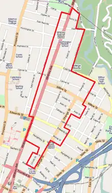 It is bordered by Edgerton Park and East Rock Park on the north. It abuts the Prospect Hill Historic District to the west and the Orange Street Historic District on the east. Yale University facilities border on the southwest and south.[2]: 59 The district is named after Whitney Avenue, the principal thoroughfare in the district, which is lined with mansions or other larger houses, while the smaller streets included in the district have mostly smaller homes.