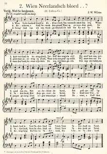 Wien Neêrlands bloed (Those in whom Dutch blood) was the national anthem of the Netherlands between 1815 and 1932.