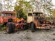 The Russian occupying power (Red Army) required a rail link to Russia in order to remove booty from Austria. Therefore, the site was also under secret observation of the United States intelligence service (USIS).[30] The so-called "Russenschleife" was built to connect the north station area and the connecting railway line to the south station with the other bank of the Danube. From April 1945, the higher track position of the northern runway was reached via a ramp. This 652 m long loop of the Russians led from the easternmost corner of the Nordwestbahnhof to the westernmost tracks of the Nordbahnhof (Northern Railway Station) across the confluence of Taborstraße and Nordbahnstraße. It was also used by heavy steam locomotives (e. g. DRB Class 52) and crossed the tracks of the tram line "O" on the same level without technical protection.[31] With the opening of the Nordbahn bridge to traffic on 31 May 1959, the loop was dismantled.[32]
