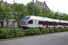 The Wiese Valley Railway (German: Wiesentalbahn) is a 27.2 km long, electrified main line in German Baden-Württemberg in the tri-national area of Germany, Switzerland and France near the Swiss city of Basel. It is part of the Basel trinational S-Bahn and referenced as S6.[2] It runs alongside the river Wiese from Basel Badischer Bahnhof in Basel (on Swiss territory) to Zell (Wiesental). It is operated by the Swiss Federal Railways (SBB CFF FFS)