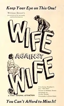 Wife Against Wife is a 1921 American drama film directed by Whitman Bennett and written by Dorothy Farnum. It is based on the 1911 play The Price by George Broadhurst. The film stars Pauline Starke, Percy Marmont, Edward Langford, Emily Fitzroy and Ottola Nesmith. The film was released on September 12, 1921, by Associated First National Pictures.[1][2][3]