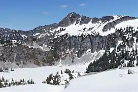 Wild Goat Peak is a 6,305-foot (1,922-metre) mountain summit located above the eastern shore of Gold Lake, in eastern King County of Washington state. It's part of the Cascade Range, and is situated in the Alpine Lakes Wilderness, on land managed by Mount Baker-Snoqualmie National Forest. Precipitation runoff from the mountain drains into tributaries of the Snoqualmie and Skykomish Rivers. The nearest higher neighbor is Big Snow Mountain, 1.91 mi (3.07 km) to the southwest.[1] This peak was once called "Big Snowy".[2]