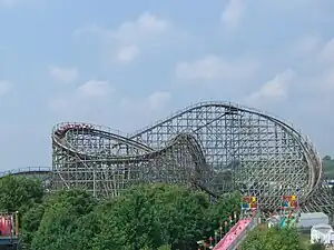 In June 1995, the Hershey Entertainment and Resorts Company announced that it would build "The Wildcat", a wooden roller coaster at Hersheypark in Hershey, Pennsylvania, over the following year.[2][3] The ride would be named after The Wild Cat, Hersheypark's first roller coaster, which operated from 1923 to 1945.[4][5] The coaster was intended as the main attraction in Midway America, an area in Hersheypark themed to classic American attractions;[2][6] construction of the themed area had begun the prior month.[3] Wildcat was the first coaster constructed by Pennsylvania firm Great Coasters International (GCI).[4][6] The 2-acre (0.81 ha) plot on which the ride was built had previously been used for parking.[7]