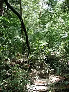 Approximately 15% of the country has forest cover while wooded land constitutes approximately 34% of the area. Very little closed forest can be found and this is mainly of the gallery forest type along waterways. The open forests include savanna of four types, namely Sahelian, Sahelian-Sudanian, Sudanian, and Sudanian-Guinean.[11] Though much of the country is dry and sparse, vegetation can vary considerably. Northern Burkina Faso consists mainly of savanna, acacia woodland, and during the wet season, prickly shrubs and stunted trees flourish.[1] Herbaceous plants include broadleaf deciduous, shrub, desert shrub, semi-desert savanna and thorny scrub. Crops include banana, cassava, bougainvillea, cotton, guava, maize, spinach, Malabar spinach, millet, onions, papaya, sorghum, tomatoes, and yams. Most of the country consists of sparse savanna grasslands, with the occasional shrub or acacia. Although the country only has about 15% forest cover overall, there are many forests in the south, growing denser along the banks of the perennial rivers.[1] These include Diéfoula Forest, Logoniégué Forest, Laba Forest, Dida Forest, Koulbi National Forest, Bontioli Reserve Forest, Nabere Partial Reserve Forest, Koflandé Forest, Maro Forest, Tui Forest, Deux Balés Forest, Kalio Forest, Tisse Forest, Dibon Forest, Pâ Forest, Mou Forest, Boulon Forest, Tigo Forest, Nakambe Forest and Niangoloko Forest, of which about 16% have official protection.