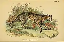 There are a number of large mammals in Laos, including the Asian elephant (Elephas maximus) and Indochinese tiger (Panthera tigris corbetti). There are two species of bear, the sun bear (Helarctos malayanus) and Asian black bear (Ursus thibetanus).[6] Smaller carnivorans include the leopard cat (Prionailurus bengalensis), marbled cat (Pardofelis marmorata) and hog badger (Arctonyx collaris).