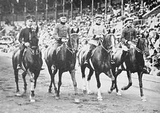 Count Wilhelm of Hohenau; Sigismund Freyer; Ernst Deloch; Prince Friedrich Karl of Prussia (from right to left): Germany´s bronze equestrian team at the 1912 Summer Olympics in Stockholm