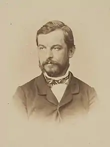 Hofmeister and his sister Clementine were the children of Friederich and Frederike (nee Seidenschnur) Hofmeister.[1] His father was a book and music publisher and seller in Leipzig. He left vocational high school (Realschule) at the age of 15 and was apprenticed in a bookshop in Hamburg by an acquaintance of his father. He met Muriel Agnes Lurgenstein and they married in 1847,[1] subsequently having nine children. That same year, he was initiated freemasonry at Lodge Apollo in Hamburg.[2] She (died 28 March 1870) and seven children pre-deceased him.[3] His second marriage to Johanna Schmidt on 26 February 1876 was short because he died in 1877 following several strokes.[1]