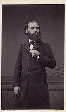 He studied at Bonn and Berlin; was a professor of architecture at the Berlin Bauakademie (1857–61) and a professor of art history at the Polytechnic in Zurich (1861–66), the Polytechnic in Stuttgart (1866–85), and the Technische Hochschule in Karlsruhe (1885–93).[1] Previous to his work in art, he gave instruction in vocal and pianoforte music.