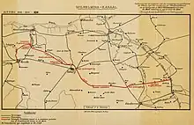 In spite of the non-committal character of the law, the government started to delimit the future course of the canal in July 1906.[20] Soon after, 500,000 guilders for the canal were added to the 1907 budget. By May 1907 a detailed map of the section in Tilburg was published.[21] In these years a lot of time and money was spent on buying, and where necessary disappropriation, of grounds for the canal. In November 1908 the disappropriation law for the canal was treated in the House of Representatives. Overall construction was slow. In 1911 there was a budget of 750,000 guilders. Of this sum 600,000 was spent on disappropriation, and only 75,000 were spent on construction. It led to another heated debate in The Hague.[22]