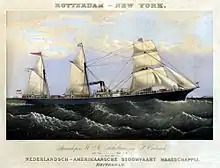 Scholten was one of the founders and the largest stockholder of the Nederlandsch-Amerikaansche Stoomvaart-Maatschappij which became later known as the Holland America Line.[1][10] SS W. A. Scholten, one of the passenger ships, bore his name.[1] In 1879, after disappointing results, he resigned from the company claiming that he was too old.[11] However, he did invest in other shipping lines.[12]