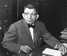 William Albert Albrecht (September 12, 1888 – May 19, 1974)[1][2] chairman of the Department of Soils at the University of Missouri, was the foremost authority on the relation of soil fertility to human health and earned four degrees from the University of Illinois at Urbana–Champaign. As emeritus professor of soils at the University of Missouri, he saw a direct link between soil quality, food quality and human health. He drew direct connections between poor quality forage crops, and ill health in livestock and from this developed a formula for ideal ratios of cations in the soil, the Base Cation Saturation Ratio. While he did not discover cation exchange in the soil as is sometimes supposed, he may have been the first to associate it with colloidal clay particles. He served as 1939 President of the Soil Science Society of America.[3]