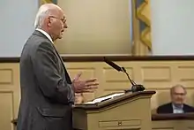 From 1987 to 1988, William Quandt was president of the Middle East Studies Association, a learned society. He joined the Department of Politics at the University of Virginia in 1994, where he held the departmental Edward R. Stettinius chair. He taught courses on the Middle East and American Foreign Policy. From 2000 to 2003, he also served as their Vice Provost for International Affairs. In 2004, he was elected to the American Academy of Arts and Sciences. After the fall semester of 2012, Quandt retired from his teaching career at UVa. Professor Schulhofer-Wohl, his replacement, commended his legacy by point out that "more than 200 students take [his class] every year, and that's clearly due in no small part to Dr. Quandt and what he brings to it. It's an amazing opportunity for me to be able to work so closely with such a distinguished scholar in this way. I don't think many people have that kind of chance."[3]