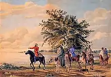 - ↑ "Huron Indians leaving their Residence near Amherstburg", painting by William Bent Berczy, appearing on lower half of page 60, Aboriginal Ontario: Historical Perspectives on the First Nations edited by Edward S. Rogers, Donald B. Smith, publ. 1994.