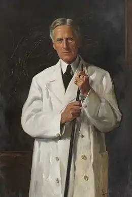 ![]() William Blair-Bell in 1931. Note the missing second finger of his left hand, which he lost when it was pricked by a needle whilst operating, leading to an infection and ultimately gangrene, necessitating amputation. | |