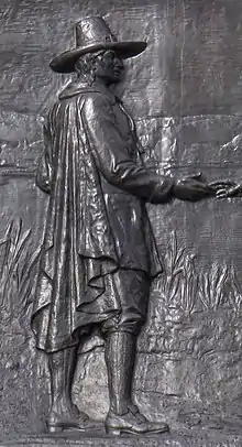![]() Conjectural representation of Blaxton on The Founders Memorial (1930) in Boston | |