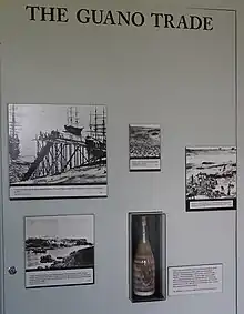 Peru: photo: Guano Information on the wall of the William D. Lawrence Museum, Nova Scotia, Canada. 2023-08-17. 1870 Pelicans Guano (excrement) from the Chincha Islands, off the coast of Peru was valuable as a natural fertilizer for the farmers. The ship sailed twice to this destination. His ship lay at anchor for 11 months in one trip were there were diplomatic problems. Le Havre, France; St. John's, Newfoundland, and then returned home.