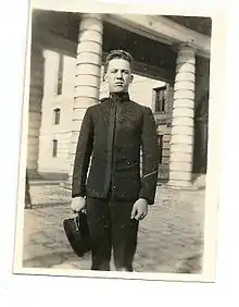 After his promotion to LTJG, he was ordered to the USS O-9 (SS-70) as the submarine's Executive Officer until her decommissioning on June 25, 1931. His next assignment was at the United States Naval Academy, where he was an English and History instructor.[5] While there, he received a Letter of Commendation from the Commandant of the academy for the many hours he volunteered to the academy's athletic department as a football and boxing coach. After his tour of duty at the academy, he was assigned to the USS Saratoga (CV-3) as the carrier's boiler division officer, ship's secretary to the Captain, and other duties. While serving on Saratoga, he was promoted to the rank of lieutenant on March 13, 1934.[6] He received a Letter of Commendation later that year from Commander Aircraft Battle Forces Atlantic Fleet for navigating the Saratoga through the Straits of Florida at high speeds in heavy weather and darkened ship conditions during Fleet exercises.[7] He remained on Saratoga for another 2 years until he was ordered to the Hydrographers Office in Baltimore, Maryland, on April 8, 1936, as the Commanding Officer of that office.[8] He served as Commanding Officer there until March 5, 1938, when he was sent to the USS Mississippi (BB-41),[9] where he served as the ships 1st Lieutenant and damage control officer.