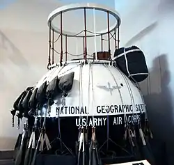 In the summer of 1934, Kepner took command of the joint National Geographic Society - US Army Air Corps Stratosphere Flight near Rapid City, South Dakota to make an attempt with the specially constructed balloon Explorer on the manned balloon altitude record. On 29 July, the balloon ascended with himself and two fellow US Army Air Corp officers, Capt. Albert W. Stevens and Capt. Orvil A. Anderson as crew.[5] However, the attempt nearly ended in tragedy when the balloon envelope ruptured near maximum height, sending the spherical pressurized gondola plunging earthwards. Fortunately, as the gondola reached lower altitudes, all three occupants were able to exit and safely parachute to earth shortly before it crashed.