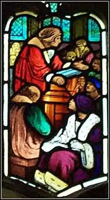 ![]() William Grocyn lectures in Greek at Oxford (Victorian window in Worcester Cathedral) | |