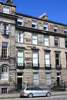 In the 1830s Playfair is listed as living at 17 Great Stuart Street on the prestigious Moray Estate in Edinburgh's West End.[4] This is not a building of his own design, but is by his rival James Gillespie Graham.[5]