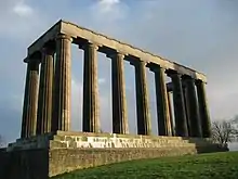 The unfinished National Monument, Edinburgh, begun in 1826