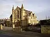 1879–80 | In Gothic Revival style, the main front includes a round-headed double doorway, and a four-light wheel window, flanked by pilasters rising to turrets with decorated pyramidal spires.[27] | II |