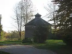 William Hill Polygonal Barn, also known as the Hill-Mershon Barn, is an eight-sided barn located at Bloomingdale, Parke County, Indiana. It was built about 1905, and is a two-story, octagonal frame building. It measures 30 feet in width and is topped by a sectional cone roof topped by an octagonal cupola.[2]:5