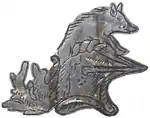 - ↑ The usual attitude of heraldic beasts is facing dexter; the boars are shown facing sinister on Huddesfield's tabard, but facing dexter on the brass escutcheon set into the ledger stone of his monument
