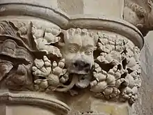 - St Cuthbert, Ackworth, 1855.[35] Possibly some foliage decoration, and a dog in foliage on a capital.