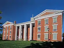 The college is named after Dr. William Jewell, who in 1849 donated $10,000 to start a school. Jewell, who was from Columbia, Missouri, had wanted the school built in Boonville, Missouri. However, Liberty resident Alexander William Doniphan argued that donated undeveloped land in Liberty would be more valuable than the proposed developed land in Boonville, and Liberty was eventually chosen. Judge James Turner Vance Thompson donated the hilltop land on which the campus sits.[4] In the American Civil War during the Battle of Liberty, the main building on campus, Jewell Hall, was used as a hospital, infirmary, and stables for the United States Army. Union troops were buried on the campus. It was listed on the National Register of Historic Places in 1978.[5] The Mt. Memorial Cemetery, listed on the National Register of Historic Places in 2012, is located on the campus grounds.[6] One of the schools founders was Baptist minister Robert S. James, father of Jesse James.