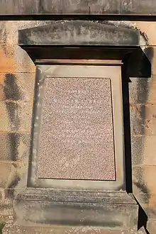 Lennie died on 20 July 1852 aged 73[7] in Edinburgh.[1][2] at home 23 St Andrew Square. He is then described as "William Lennie of Ballochneck, teacher".[8] He is buried in the Grange Cemetery in south Edinburgh. The grave lies midway along the north wall.