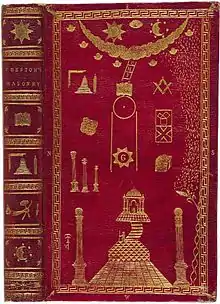 An 1804 edition of Illustrations of Masonry in a custom binding decorated with Masonic emblems
