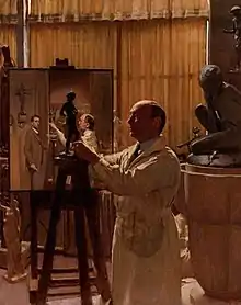 Dick designed several war memorials notably at Bushey, at Rickmansworth and the eagle sculpture atop the Royal Air Force Memorial on the Victoria Embankment in London.[3][4] He received a major commission for the Kitchener Memorial Chapel (1922–25) in St Paul's Cathedral, London.[4] The focal point of this design was a Pièta, which won a gold medal at the Paris International Exhibition of Modern Decorative and Industrial Arts in 1925. These works secured his reputation and election to the Royal Academy in 1928, having been elected an Associate member in 1921.[7][8] His work was part of the sculpture event in the art competition at the 1928 Summer Olympics.[9] In 1935 Dick was Knighted and elected President of the Royal Society of British Sculptors, a post he held until 1938.[7][8] From 1938 to 1952 Dick served as King's Sculptor in Ordinary for Scotland and then, from 1952 until his death, Dick was the Queen's Sculptor in Ordinary for Scotland.[7][10][11] He attended numerous royal events and created several portraits and memorials to members of the Royal Family plus several busts of political and artistic figures of the time.[4][8]