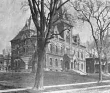 In 1871, the library moved to a new building named the William Rice Building. It became a free public library in 1885.[14] When he died in 1897, the library had more than 99,000 volumes.