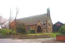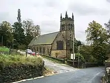 This is a Grade II listed building on Whitehall Road, Drighlington, West Yorkshire.[11] Barber designed this Gothic Revival building in 1876 at a cost of £7,400 as a replacement near the site of an earlier Moravian Church of 1797, which he demolished in January 1878, having possibly re-used some of the stone.[143][144] It was consecrated at 11.30 am on Friday 26 April 1878 by the Bishop of Ripon who called the church "beautiful," and the Leeds Mercury commented on the attractive "plain but massive" structure. The consecration was attended by a large congregation which retired directly afterwards to luncheon in the local schoolroom, where Barber was given a vote of thanks for his work.[145]