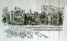This design by Mallinson and Barber was an 1871 rebuild of a 17th-century house for client Tom Holdsworth. It is located off Mansion Lane near Huddersfield Road, Halifax. By 1905 it had been bought by James Booth JP, a mill owner, then in 1916 its annexe became a World War I hospital. Between 1919 and 1931 it was a guest house for young men, owned by J. H. Whitley. It was empty until 1938 when Patons and Baldwins acquired it as a sports facility for employees. In 1948 they presented it to Halifax Corporation and its gardens became a school sports ground. The Northern Ballet Theatre Company was there briefly in 1990, then the building fell into disrepair. In 2011 the Calderdale Register Office moved into the building, and as of 2014 it remains in occupation.[104][105] This building is now known as Spring Hall Mansions, and is not listed.[106][nb 8]