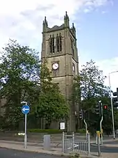 This was a Grade II listed building which had a spire.[100] It was sited on the corner of Lister Lane and Rhodes Street, Halifax, West Yorkshire.[101] It was designed by Mallinson & Barber to accommodate a congregation of 800, at a building cost of £10,000, and consecrated on 4 July 1870 by the Bishop of Ripon. It contained an organ built by William Hill. In 1952 the congregation was joined with St James to become the combined Church of St Mary and St James. The church was declared redundant and closed in 1986, and was demolished in 2001 and replaced by a housing development.[100][102][103][nb 7]