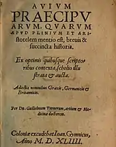 Title page of Avium Praecipuarum, 1544, the first ever printed book devoted wholly to ornithology