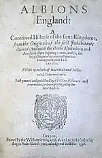 His other works are Pan his Syrinx, or Pipe, Compact of Seven Reedes (1584), a collection of prose tales; and a translation of the Menæchmi of Plautus (1595). Albion's England consisted originally of four "books," but the number was increased in successive issues, and a posthumous edition (1612) contains sixteen books. It was reprinted (1810) in Alexander Chalmers's English Poets.[3]