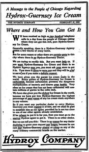 By 1922, Talcott had left the newspaper business and was working for The Hydrox Company, the largest ice cream company in Chicago. He was described in some sources as "head of the city's largest ice-cream manufacturing concern,"[27][28] but he described himself in February 1922 as the company's advertising manager.[29] He wrote an article that was published in The Soda Fountain in February 1922 urging ice cream manufacturers and vendors to adopt a sales campaign to promote winter sales of their products as an aid to good health. Talcott wrote that "the combined ice cream interests of the country should be able in the same way to get the people, men, women and children to stand on the corners and eat ice cream in a snowstorm for the sake of improved health, increased vitality, and strengthened constitution obtainable from eating plenty of the delicious product."[29] Talcott went so far as to proffer several potential slogans for use in promoting winter sales. Talcott's slogans included the following: