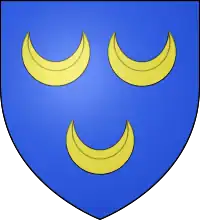 Coat of arms of William de Rithre, Lord of Rithre, Azure, three crescents or.