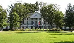 Williamsburg Inn is a historic resort hotel located at Williamsburg, Virginia. It was built in three phases between 1937 and 1972. The original section was designed by Perry Dean Rogers Architects and is dominated by a two-story portico which stands atop a ground floor arcade. It is a three-story, seven-bay, Colonial Revival style brick structure. It has two-story flanking wings in an "H"-shape. The East Wing addition, also by Perry Dean Rogers Architects, consists of multiple wings of guest rooms set at right angles to one another. A third phase embracing the Regency Dining Room and its adjoining courtyard, was completed in 1972. The Williamsburg Inn is one of the nation's finest resort hotels, internationally acclaimed for its accommodations, service and cuisine. It represented John D. Rockefeller Jr.'s commitment to bring the message of Williamsburg to a larger audience of influential Americans.[3]