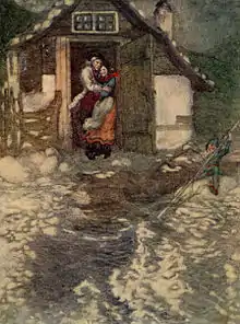 William Andrew Pogany (born Vilmos András Feichtmann (or Feuchtmann); August 24, 1882 – July 30, 1955) was a prolific Hungarian illustrator of children's and other books. His contemporaries include C. Coles Phillips, Joseph Clement Coll, Edmund Dulac, Harvey Dunn, Walter Hunt Everett, Harry Rountree, Sarah Stilwell Weber, and N.C. Wyeth.[2] He is best known for his pen and ink drawings of myths and fables.[3] A large portion of Pogany's work is described as Art Nouveau.[3] Pogany's artistic style is heavily fairy-tale orientated and often feature motifs of mythical animals such as nymphs and pixies.[3] He paid great attention to botanical details.[3] He used dreamy and warm pastel scenes with watercolors, oil paintings, and especially pen and ink.[3]